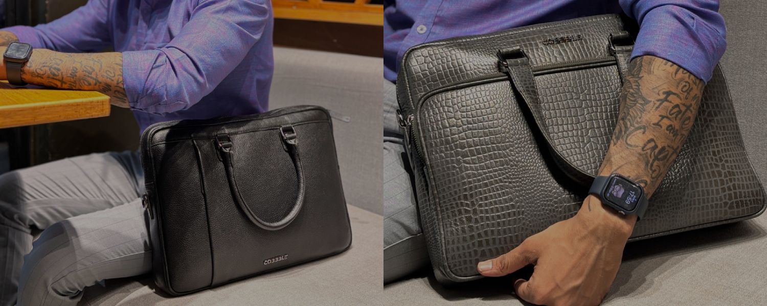 Cobbble Flat Grain Cambridge Laptop Briefcase - Grey