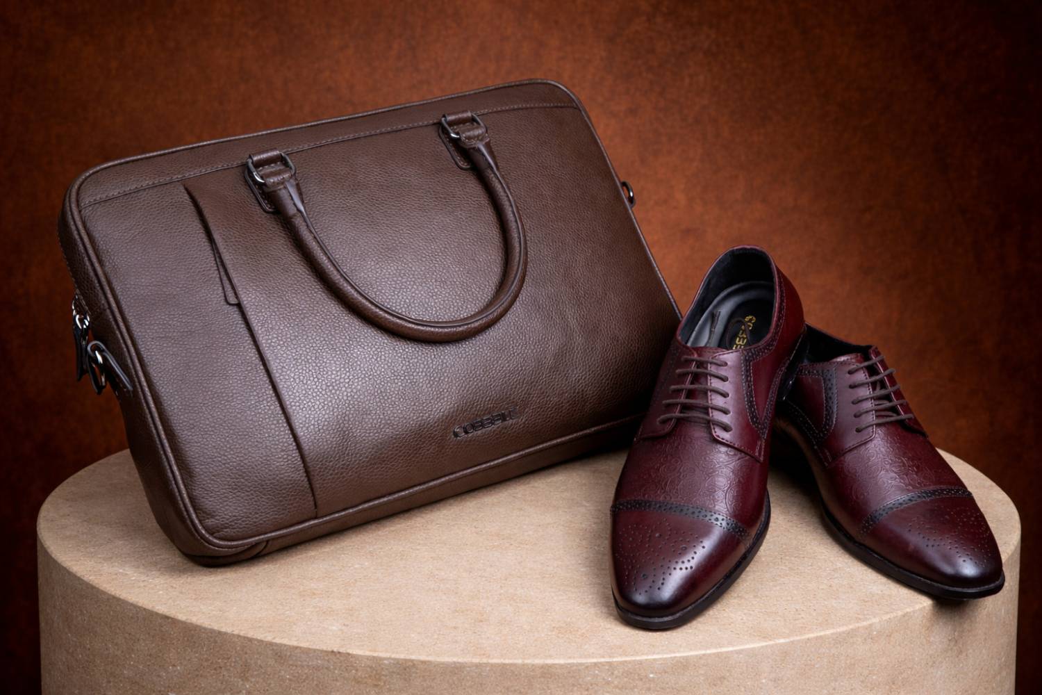 Cobbble Men's Premium Engraved Brogue Leather Shoes - Cherry